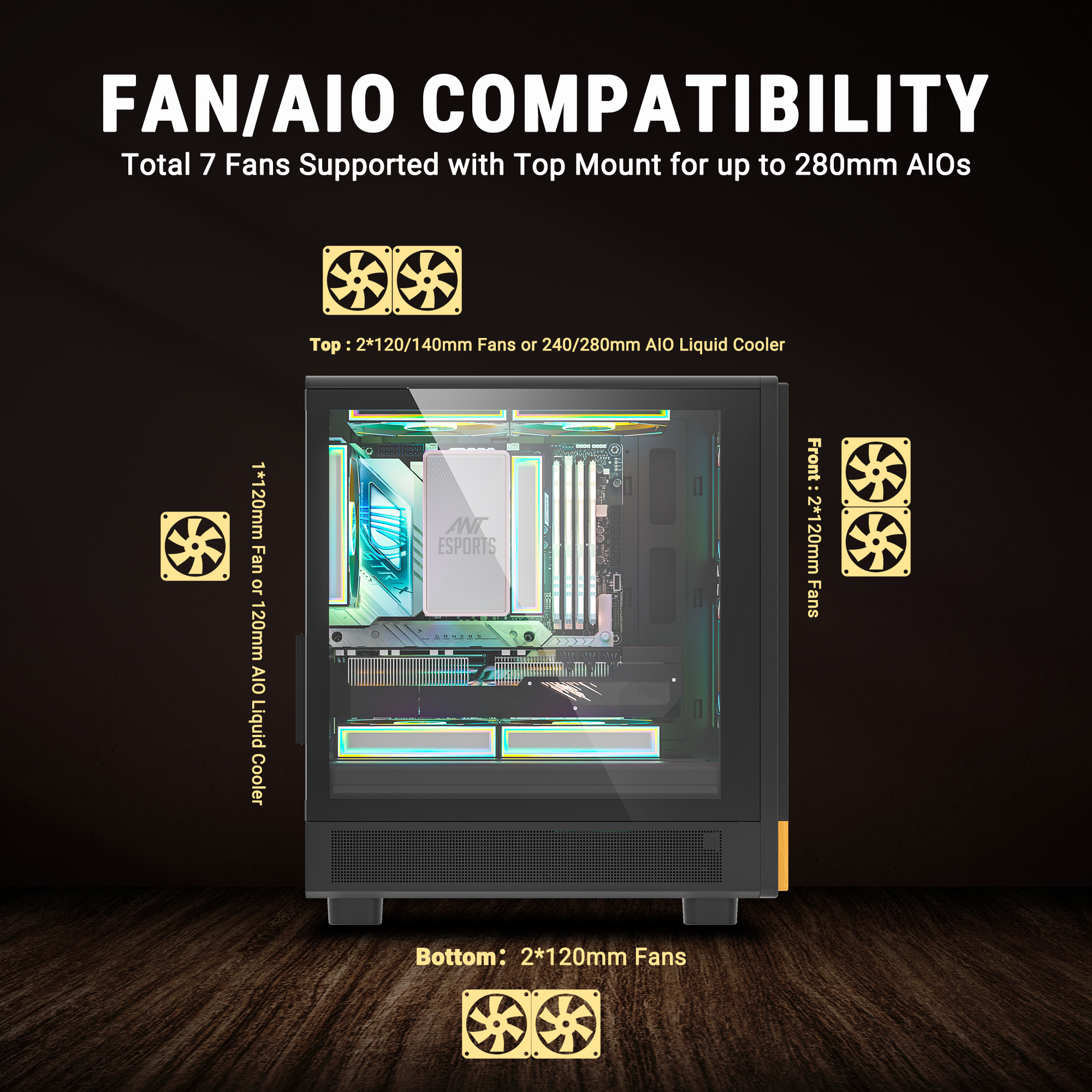 Optimized Cooling Performance – Includes 2 pre-installed 180mm front fans and 1 rear fan, with support for up to 7 fans and 240mm top radiator.