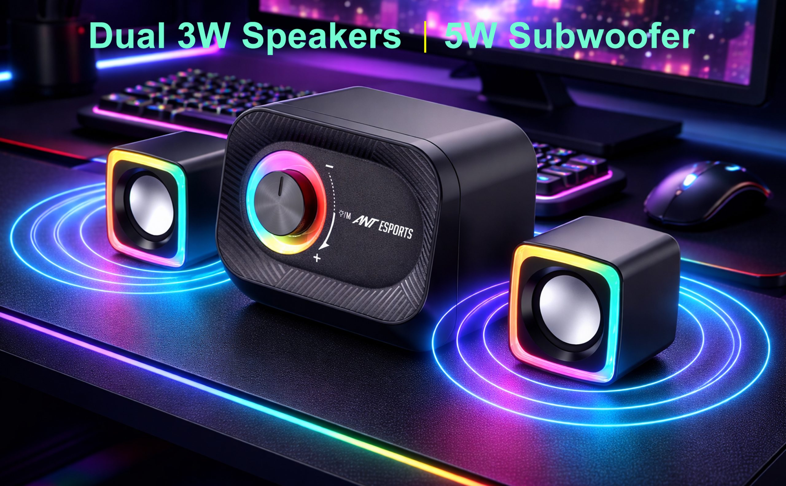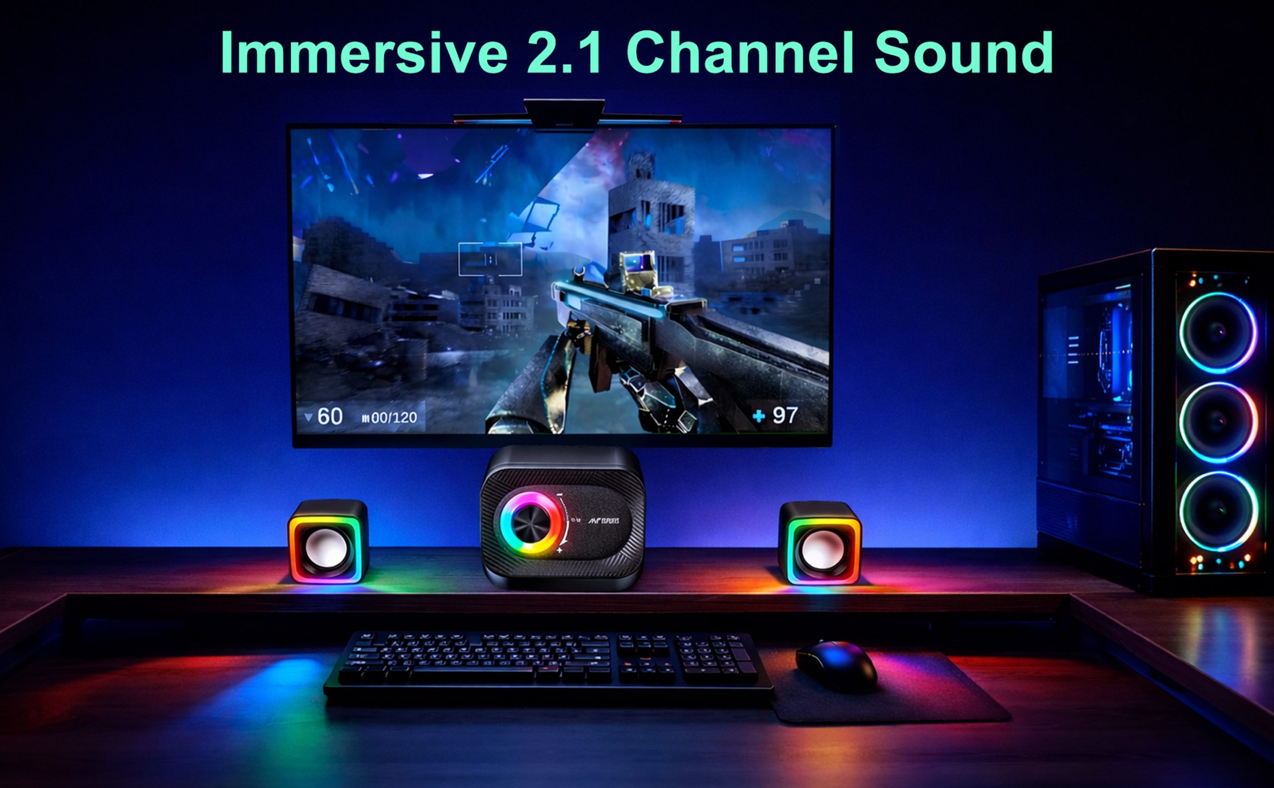 RGB LED Illuminated Subwoofer Striking circular LED lighting enhances your gaming and entertainment setup.