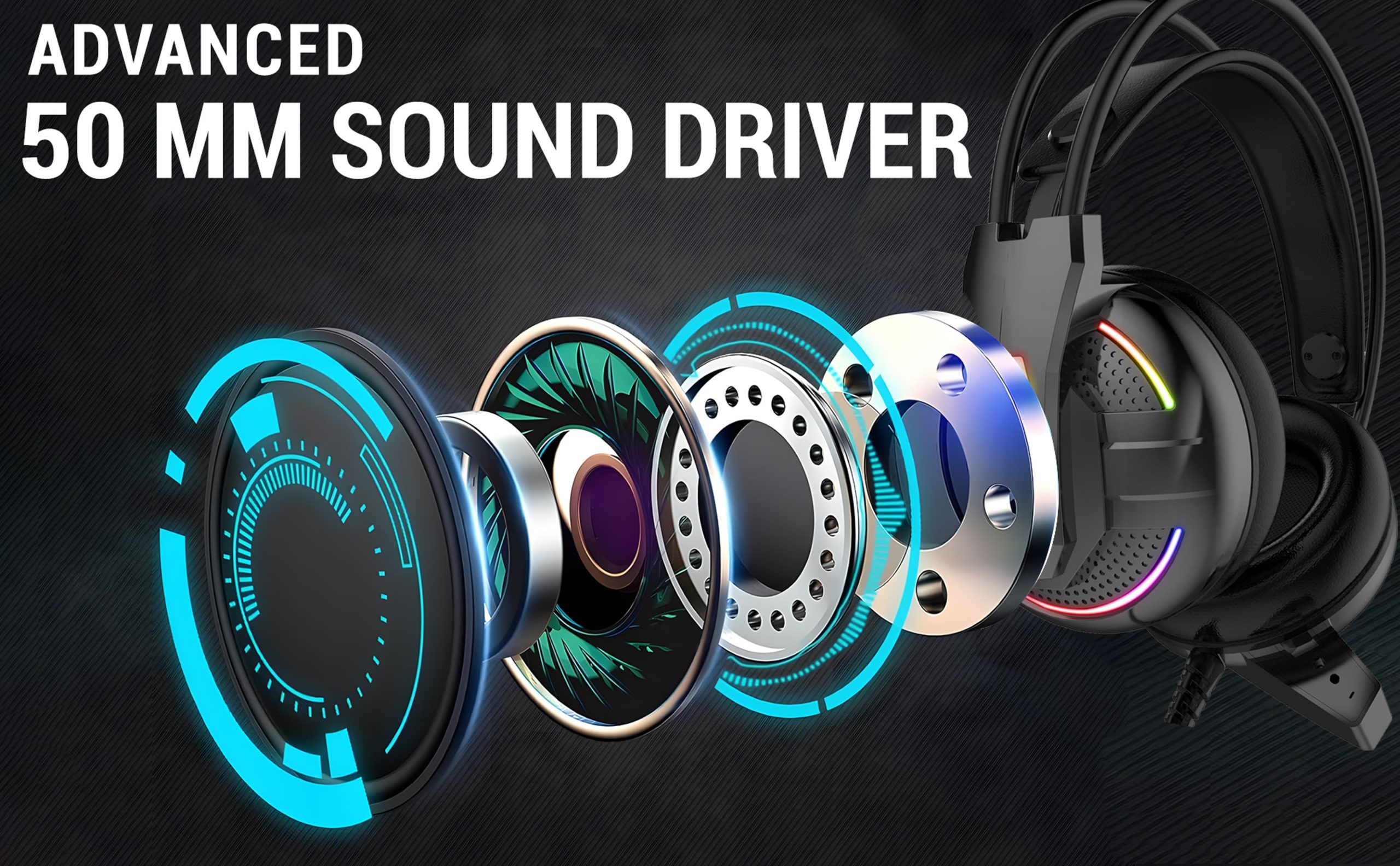 Ant Esports H590 7.1 Surround Sound Gaming Headset, USB Wired Over-Ear Headphones with 50mm Drivers, Noise Cancelling Mic, Red LED, Soft Earmuffs, for PC, PS5, Xbox, Laptop