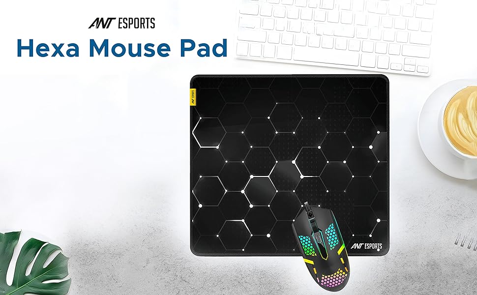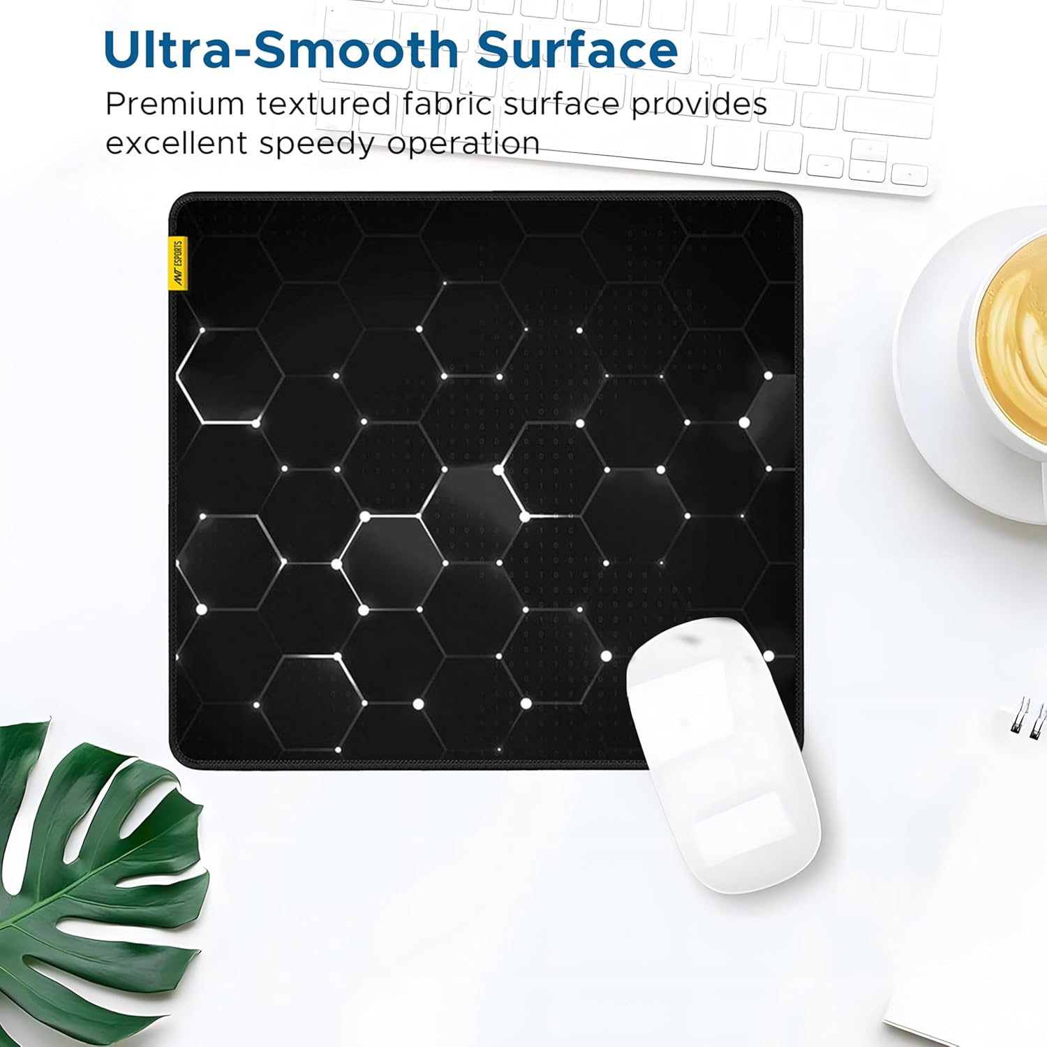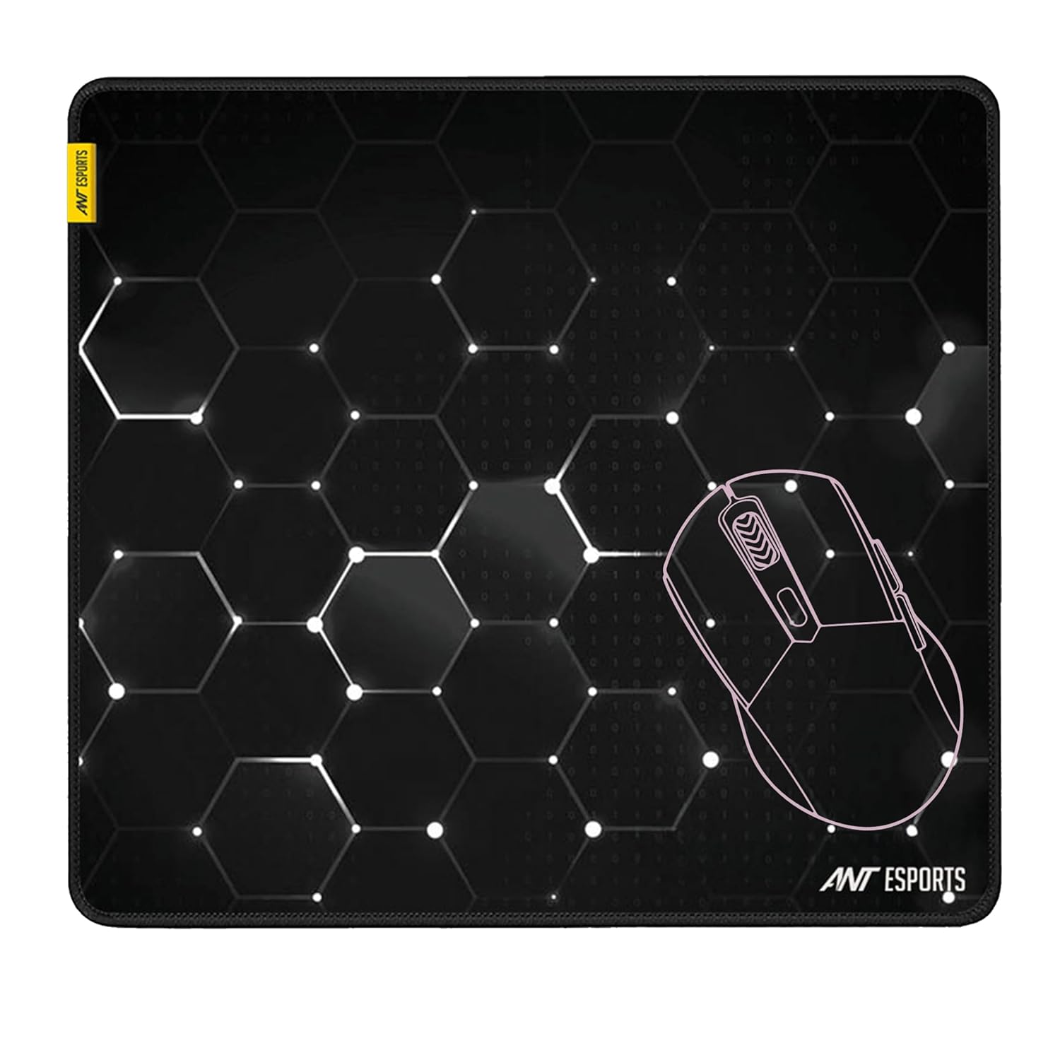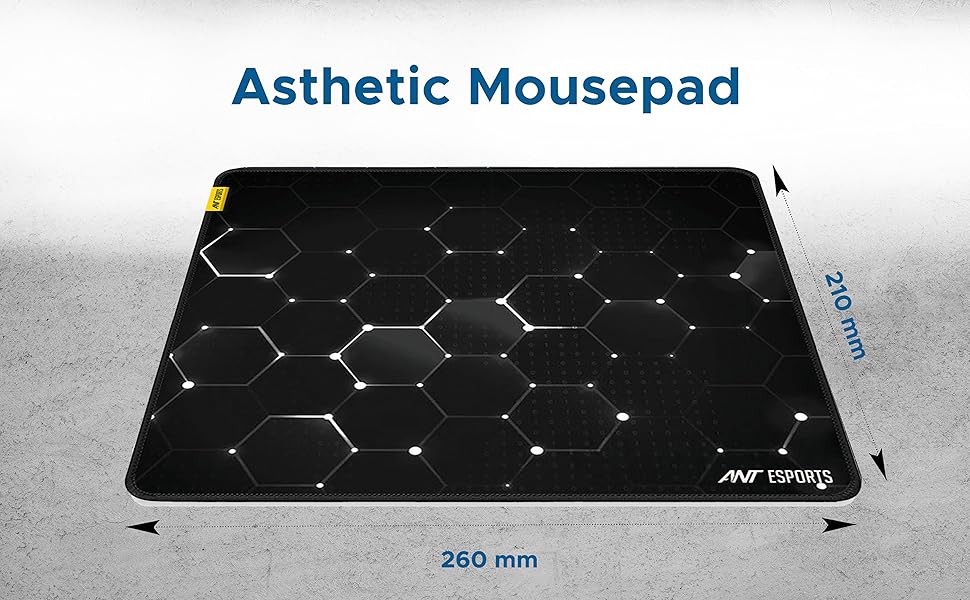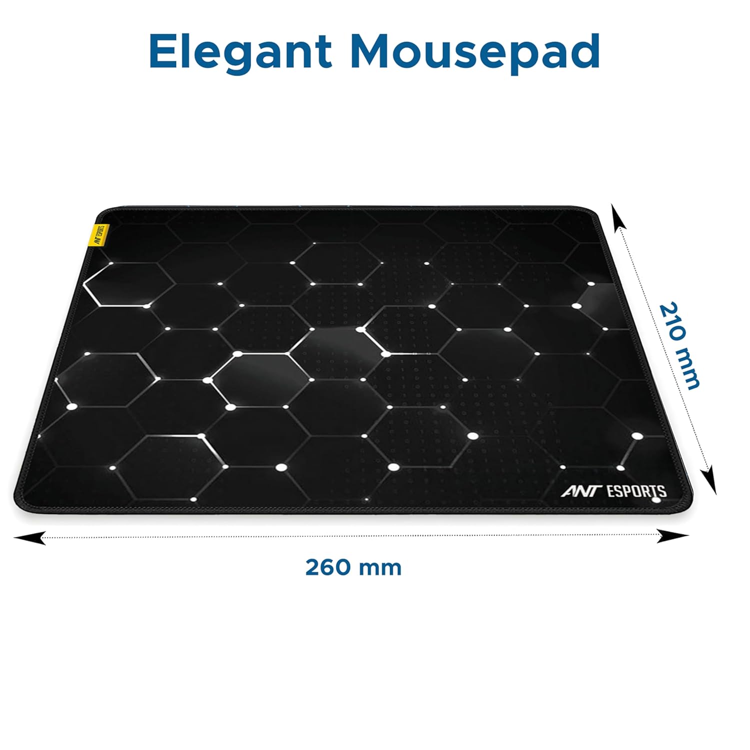Ant Esports Hexa Mouse Pad 260X210X3mm Anti-fray Stitching, Waterproof Surface & Non-Slip Rubber Base Stitched Edges Gaming Mouse Mat for Laptop, Compatible with Laser and Optical Mice – Black Hexagon