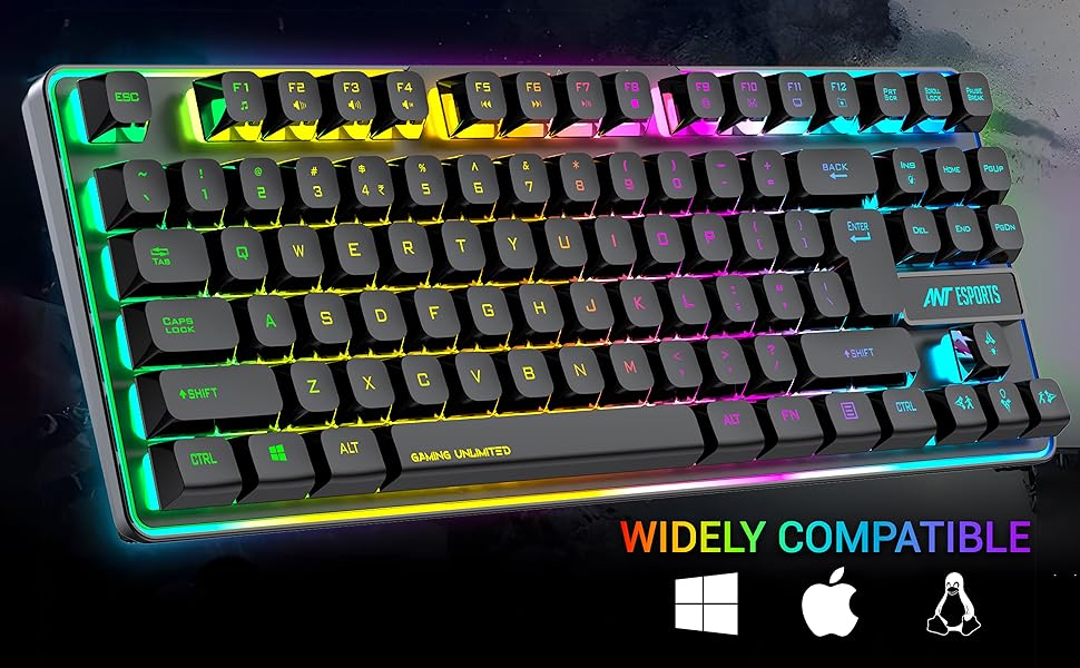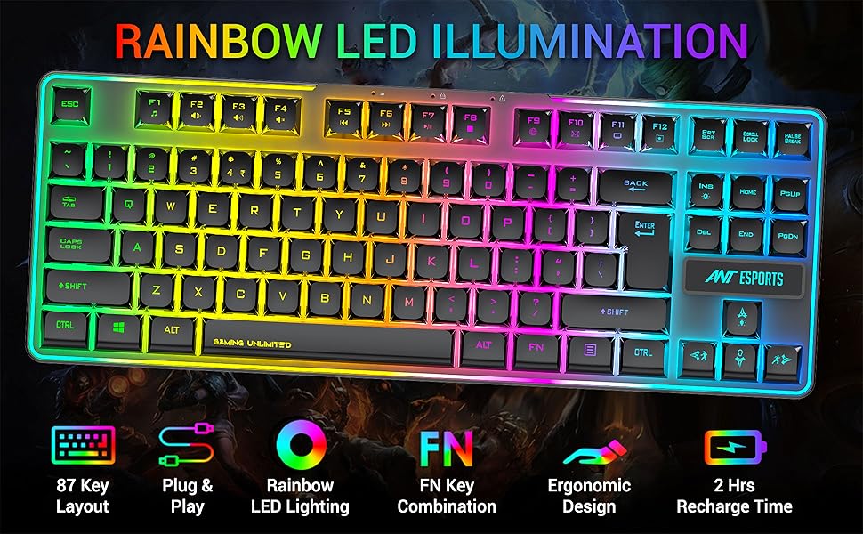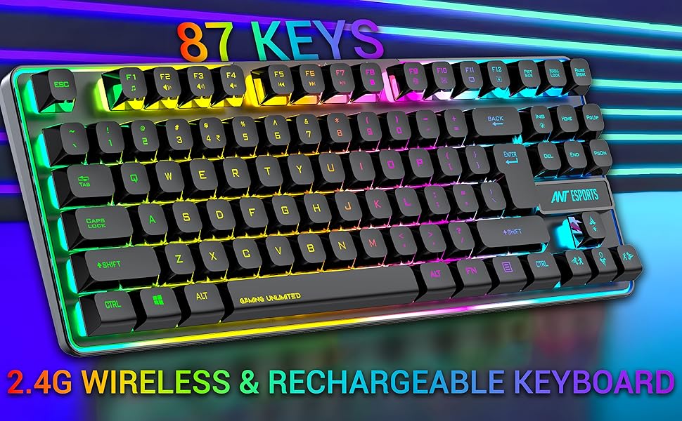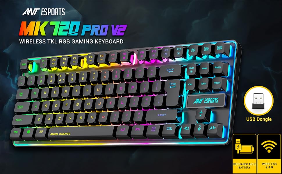 Ant Esports MK720 Pro V2 Wireless TKL RGB Gaming Membrane Keyboard, Backlit Wireless – Long Lasting Rechargeable Battery – Quite Water-Resistant Ergonomics Keyboard – PC PS5 PS4 Xbox One Mac – Black