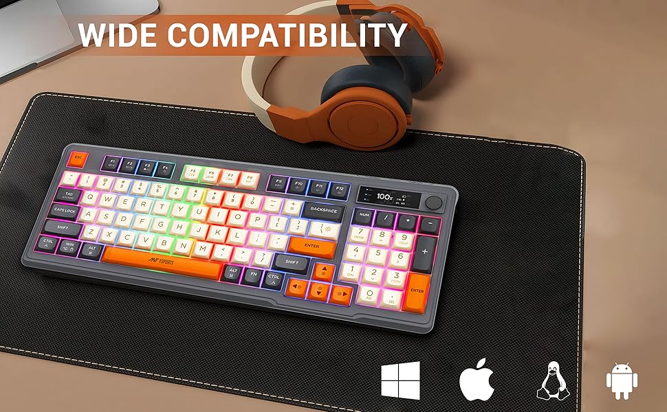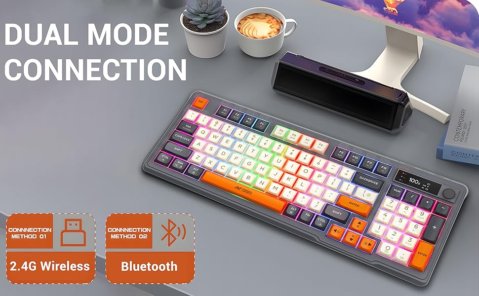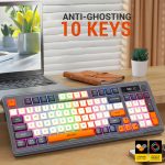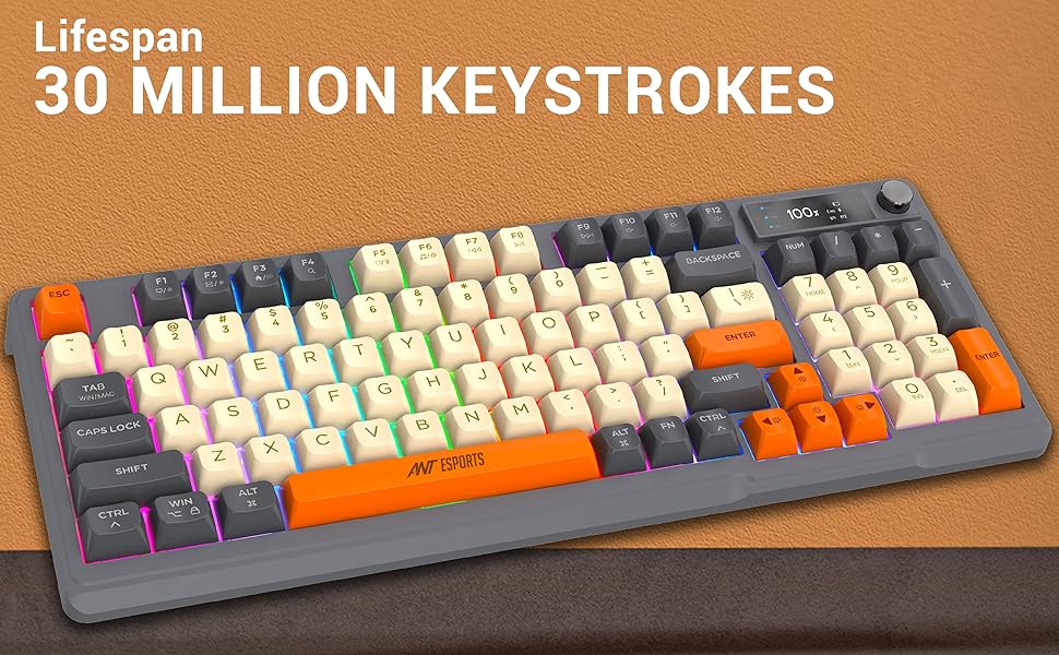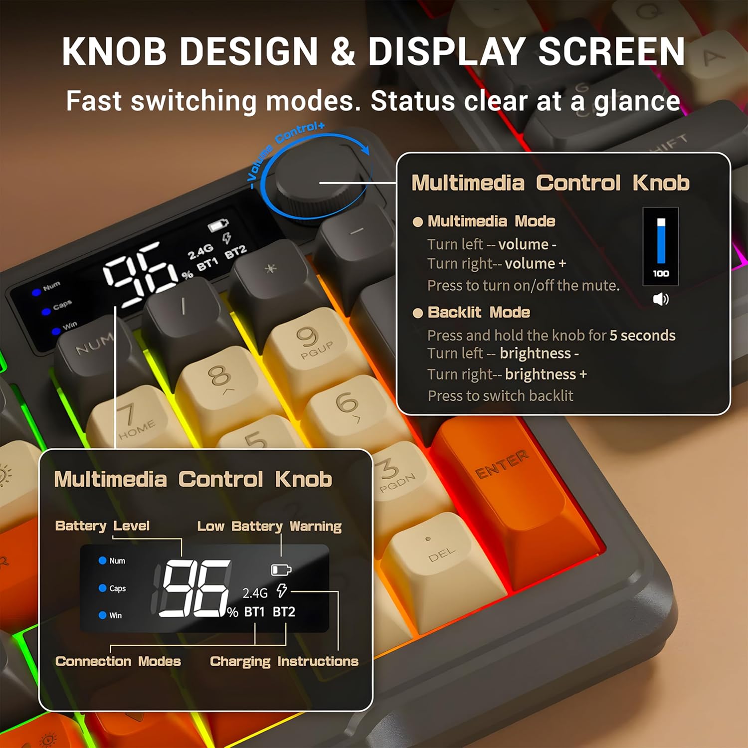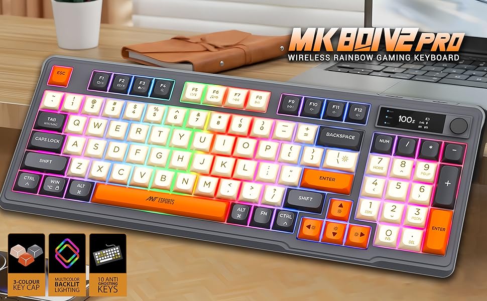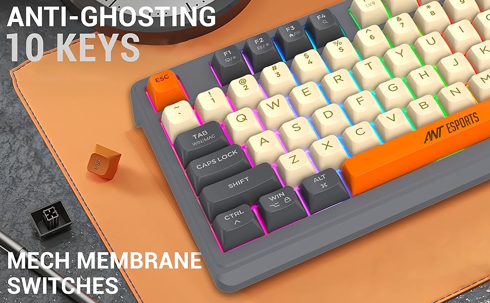 Ant Esports MK801 V2 Pro Wireless Mecha Membrane Backlit Gaming Keyboard 94 Keys 2.4G/Bluetooth Mode Compact Numeric Pad RGB Keyboard for Home Internet Cafe Game Room Office_ Grey, Beige, Orange