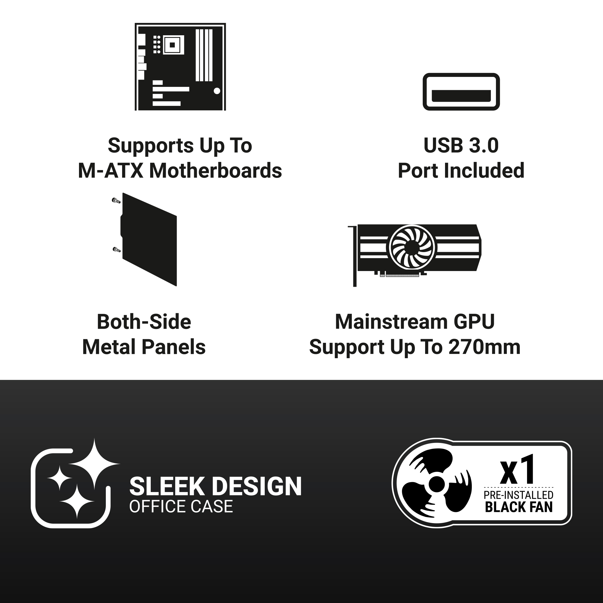 Compact and Efficient Design – A sleek micro-ATX case engineered for space-saving setups without compromising on performance or cooling.