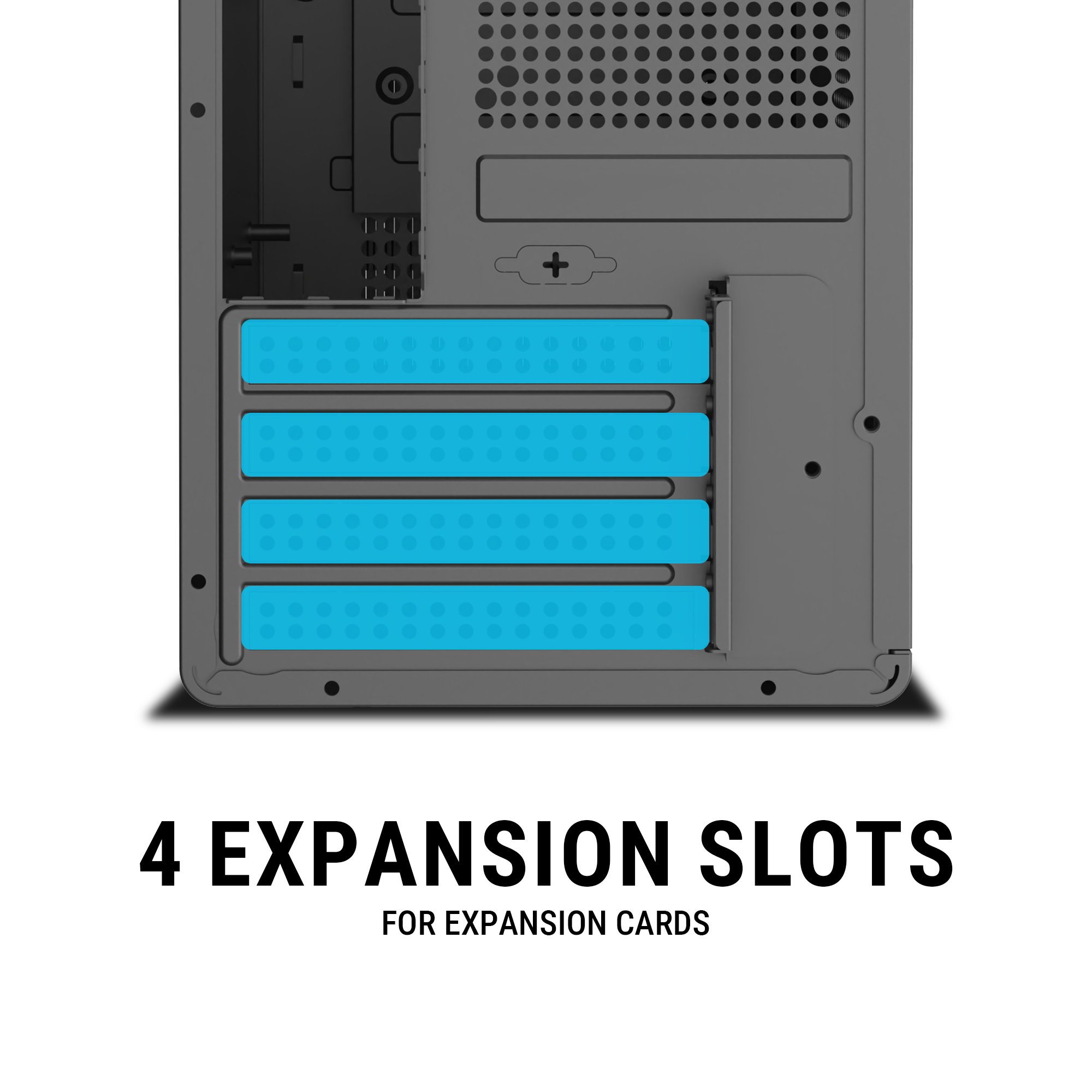 Convenient Front I/O Panel – Equipped with USB 3.0, USB 2.0, HD Audio, and Mic ports for easy and fast connectivity