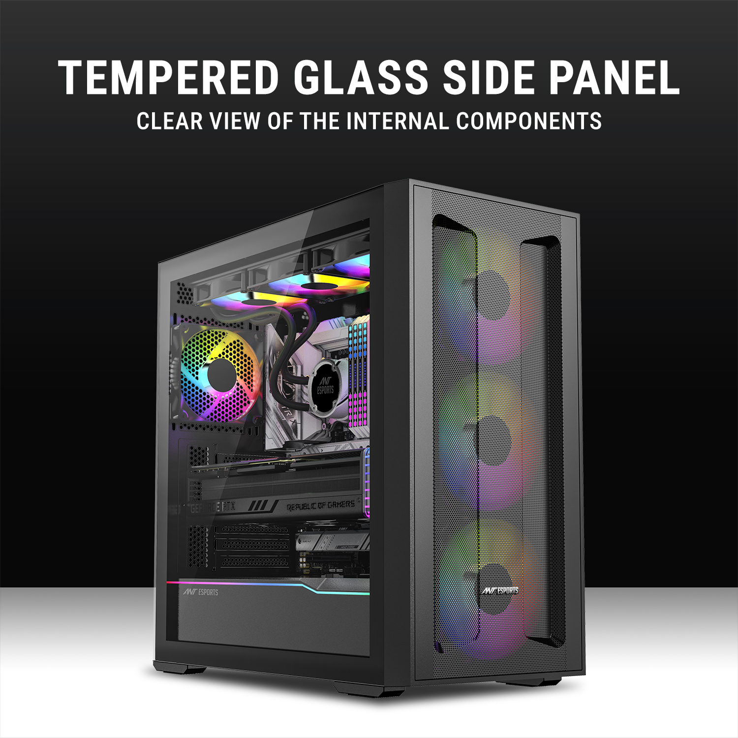Tempered Glass Side Panel – Provides a clear view of internal components and RGB lighting setups.