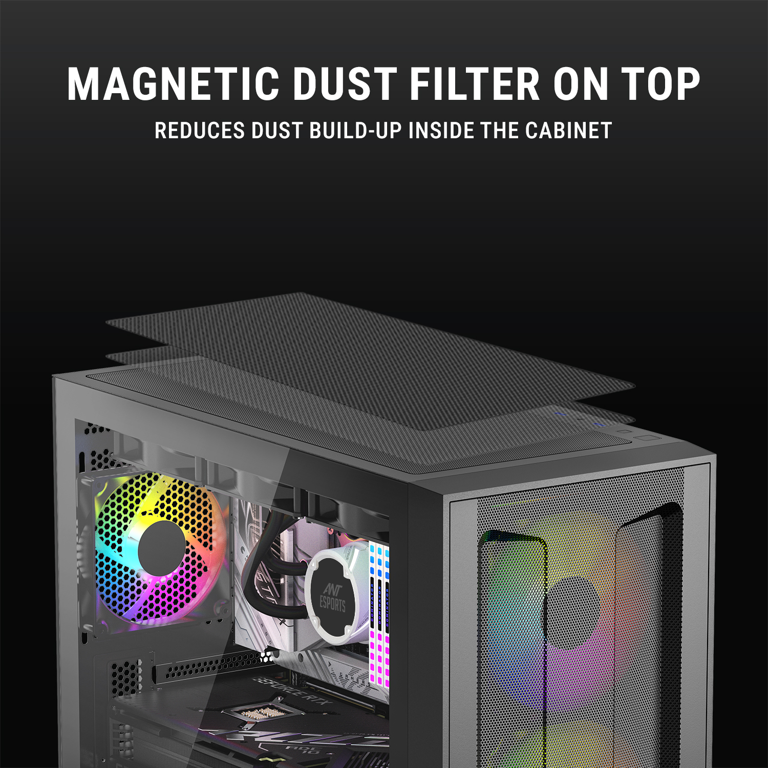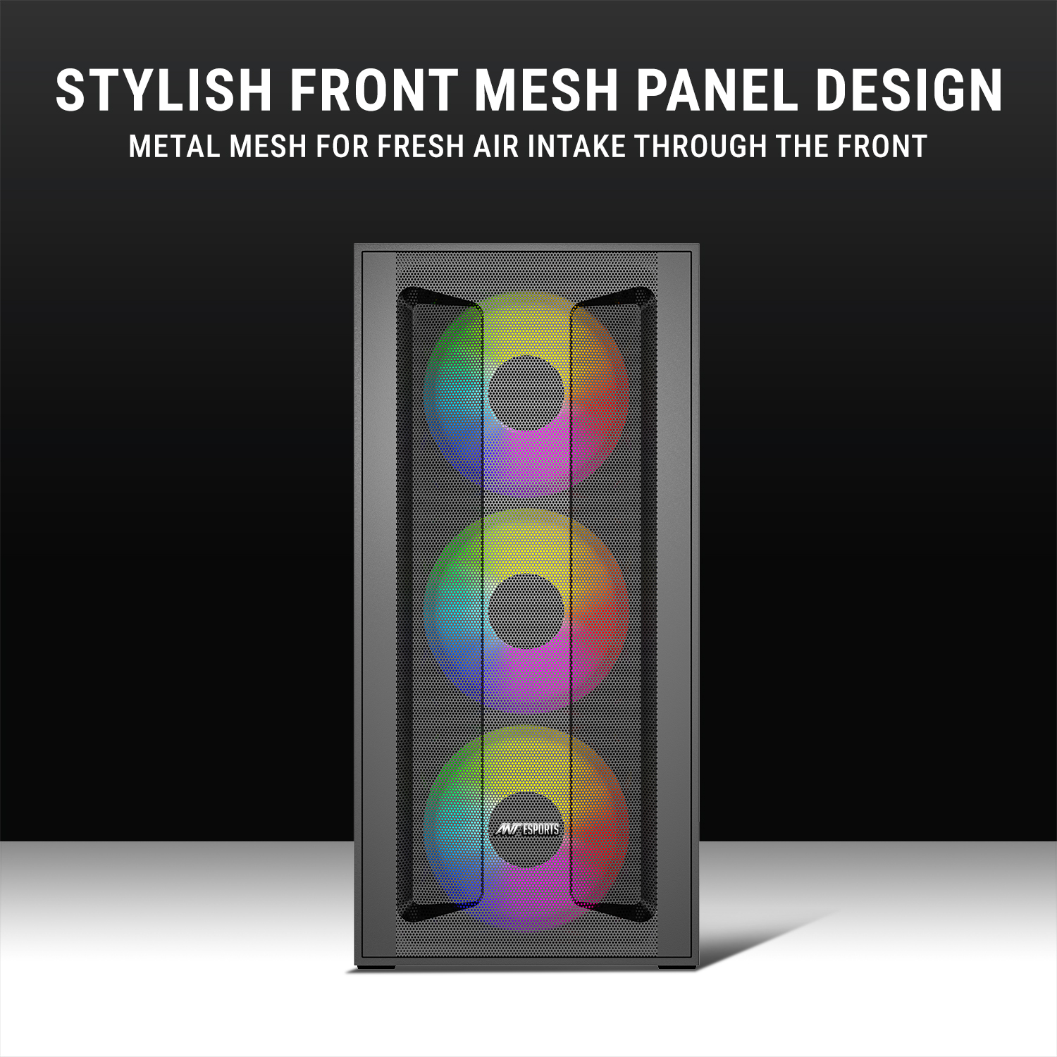 High-Airflow Mesh Front Panel – Engineered for maximum ventilation to keep your system cool under heavy load.