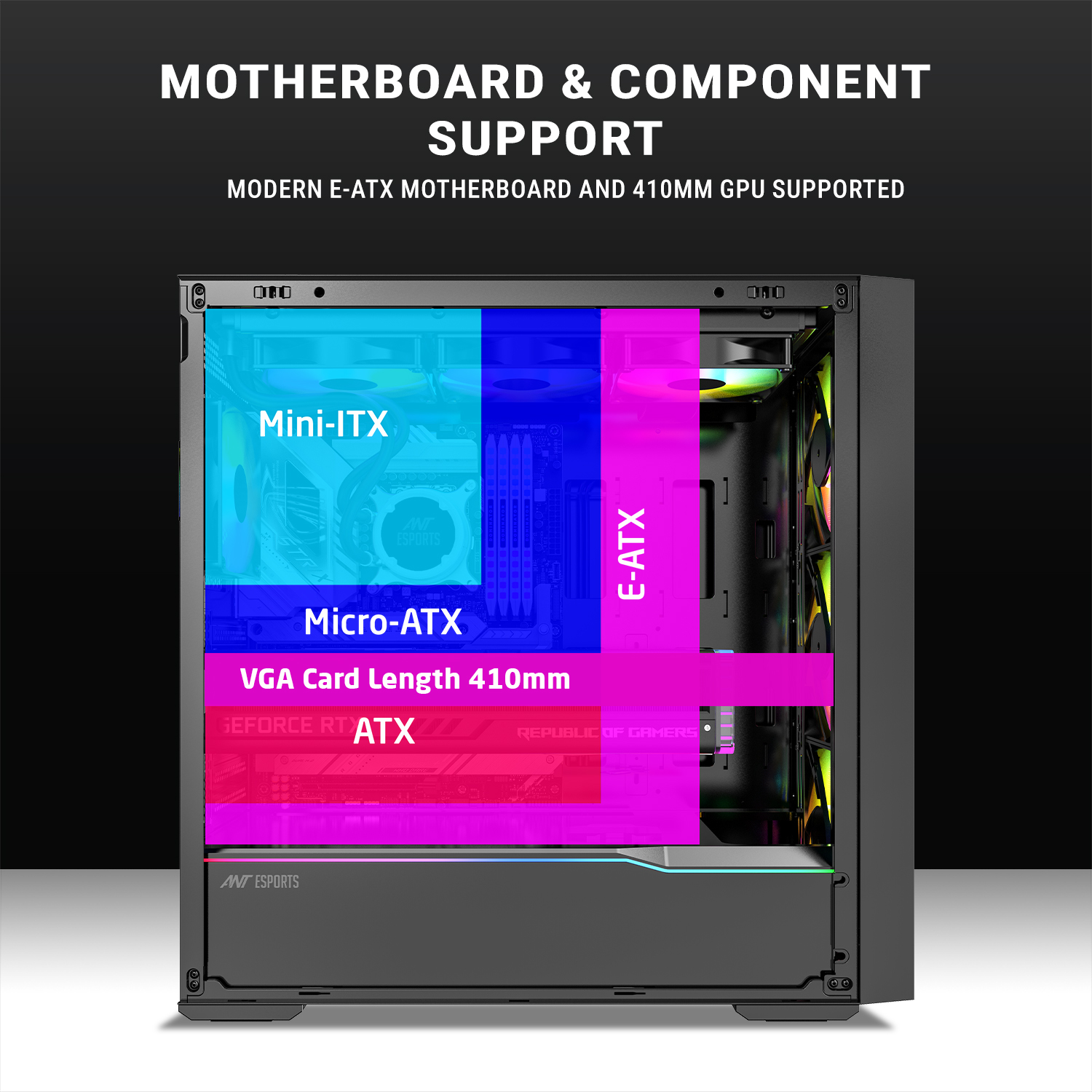 Wide Compatibility – Fits ATX, Micro-ATX, and ITX motherboards for versatile build options.