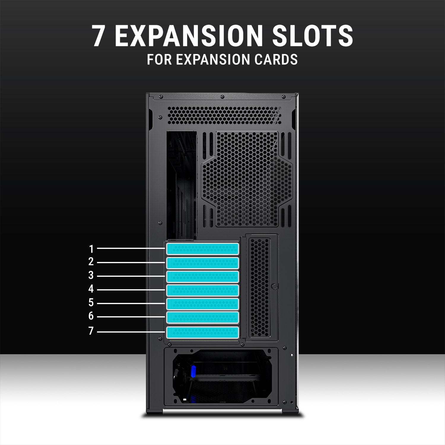 High-Airflow Cooling Design – Equipped with 4 pre-installed fans (3 front, 1 rear) and supports up to 8 fans total for optimal ventilation.