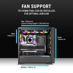 Optimized Cooling Performance – Includes 2 pre-installed 180mm front fans and 1 rear fan, with support for up to 7 fans and 240mm top radiator.