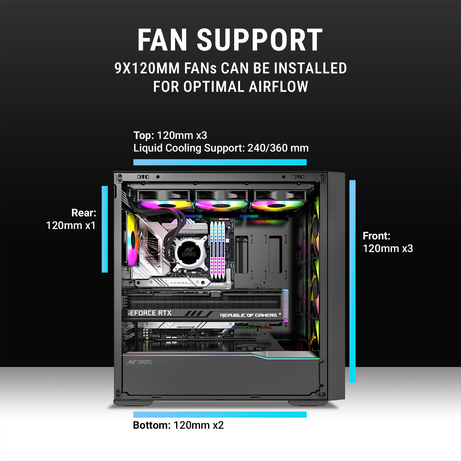 Superior Airflow Performance – Equipped with three front 120mm fans and one rear fan, ensuring efficient cooling and optimal airflow.