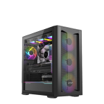 Premium Tempered Glass Design – Showcase your build with a sleek tempered glass side panel and RGB-lit front for a stylish gaming aesthetic.