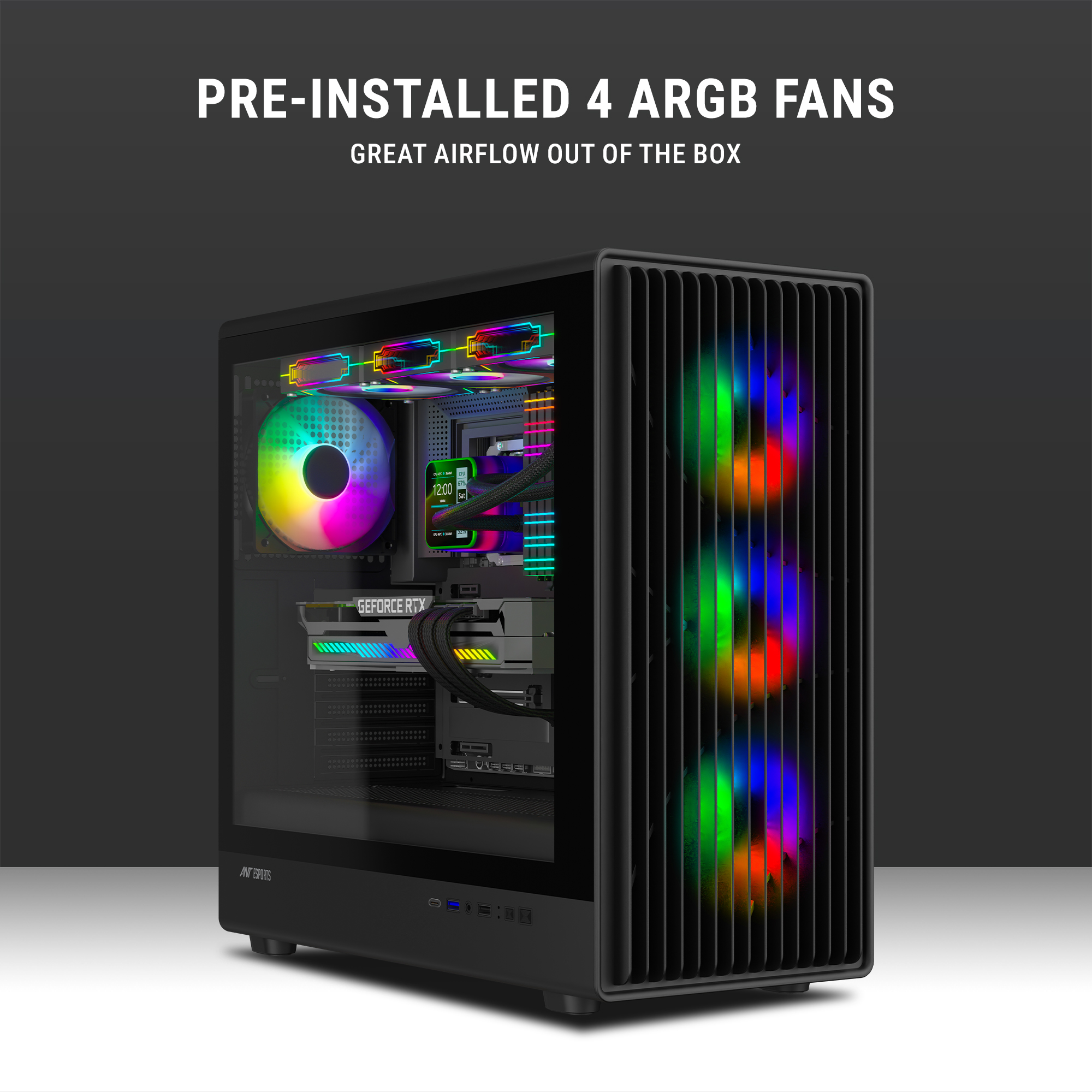 Advanced Airflow Engineering – Pre-installed with 3 side fans and 1 rear fan, offering excellent heat dissipation and quiet operation.