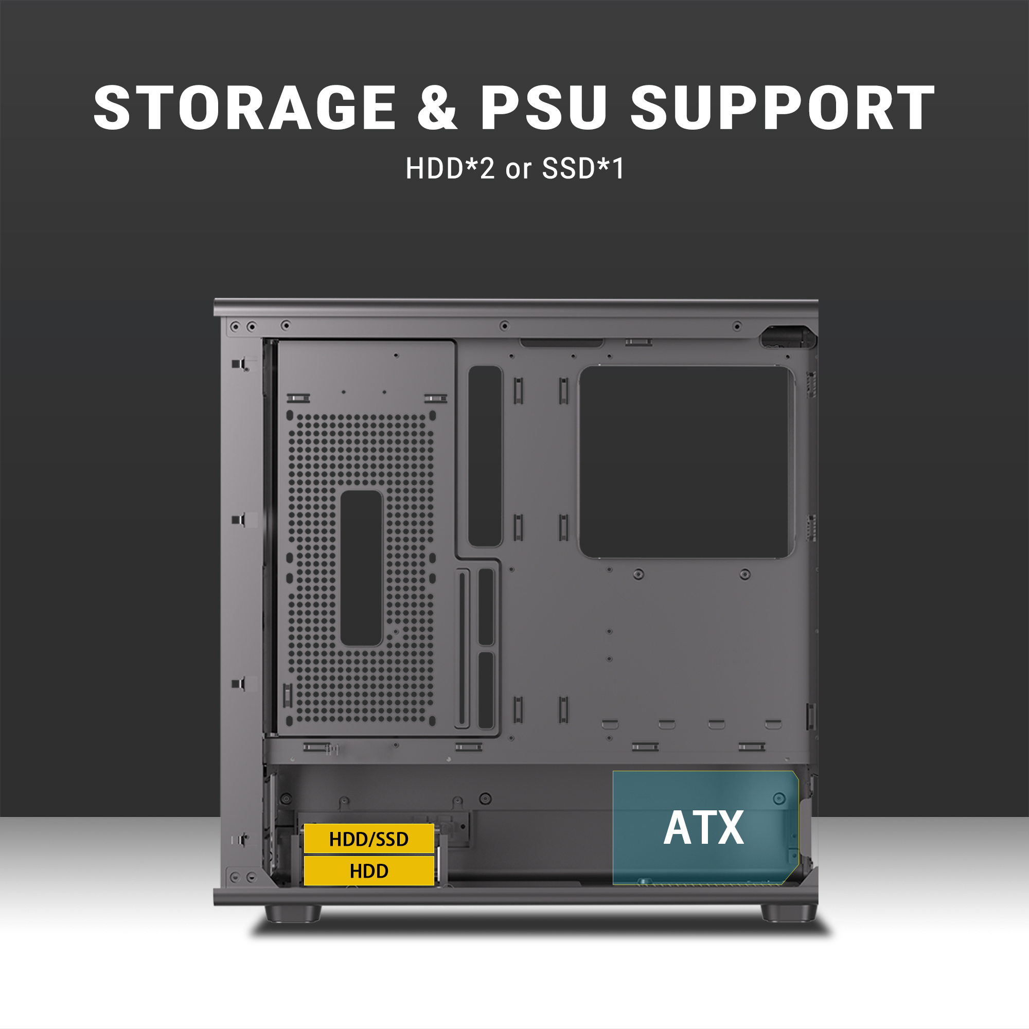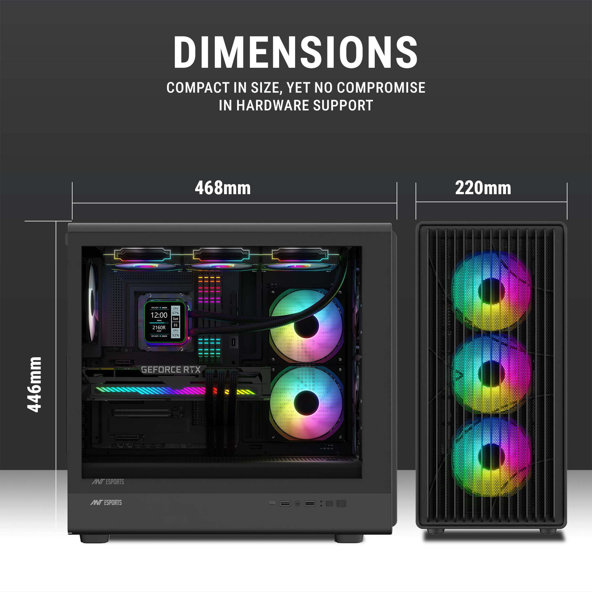 Panoramic Tempered Glass Design – Dual tempered glass side panels showcase your hardware in full glory while maintaining a premium, modern look.