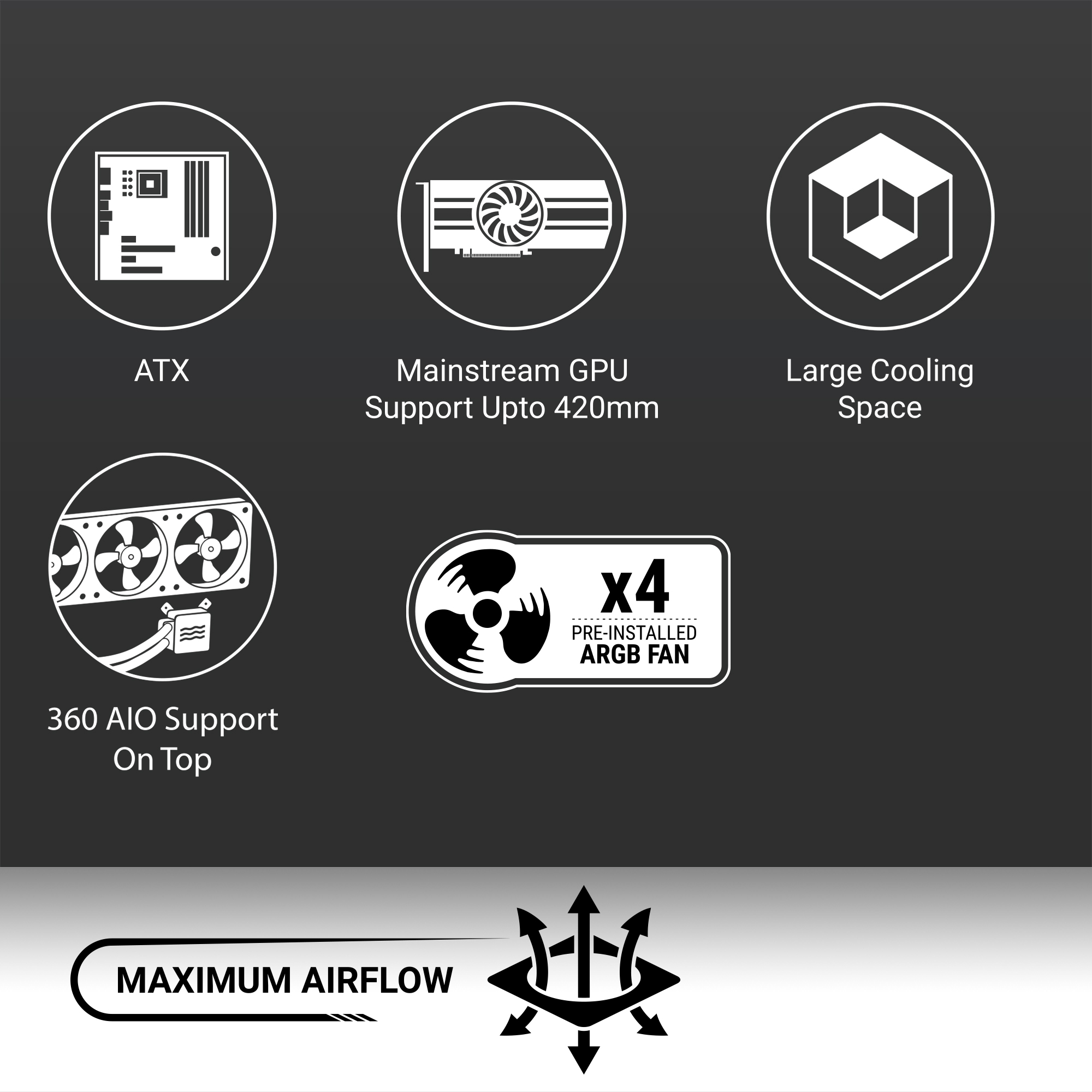 Superior Airflow Performance – Equipped with three front 120mm fans and one rear fan, ensuring efficient cooling and optimal airflow.