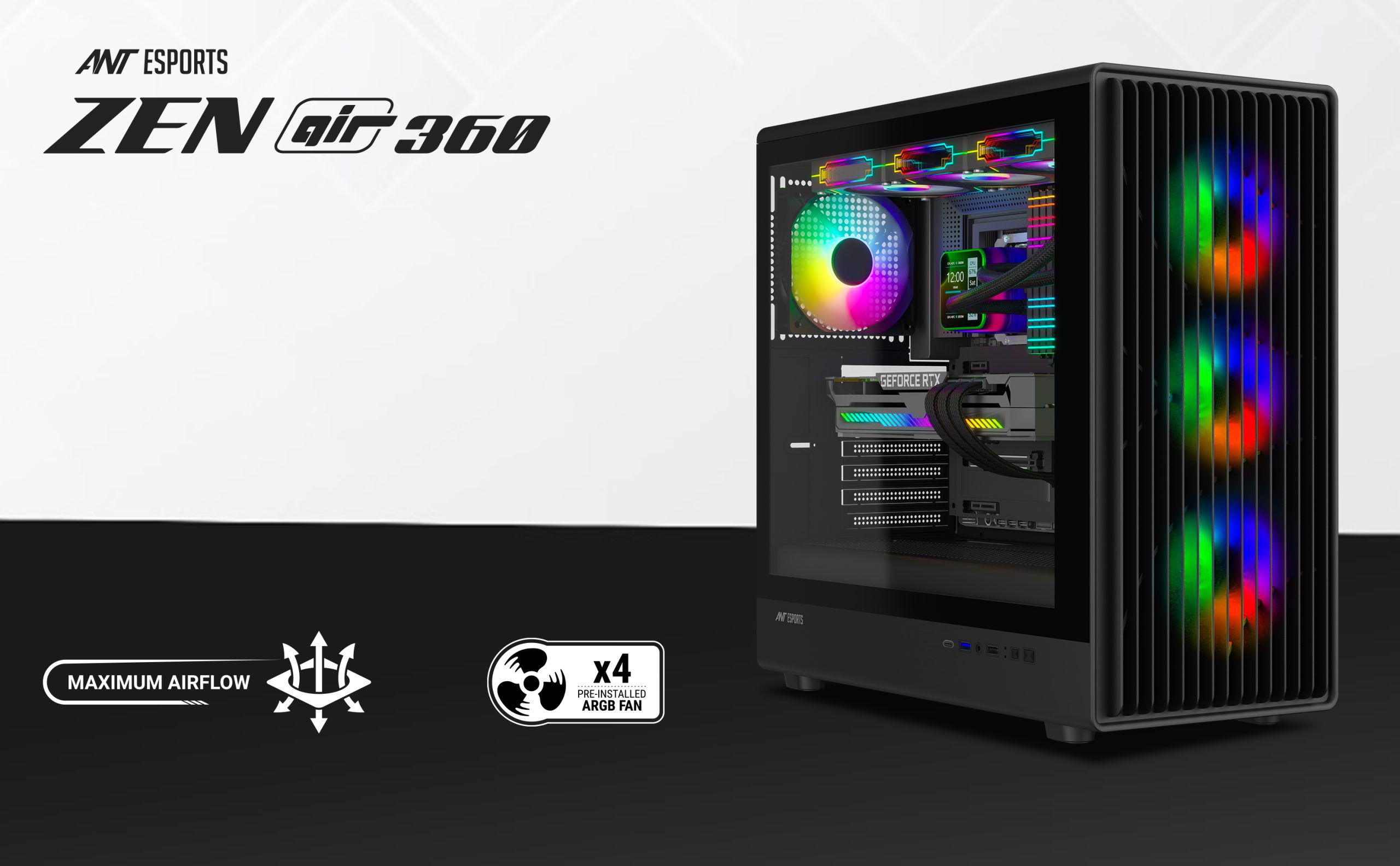 Built using premium materials such as SPCC steel and tempered glass, the Ant Esports ZEN Air 360 combines durability, airflow efficiency, and clean design—making it a perfect foundation for your next gaming or performance PC.