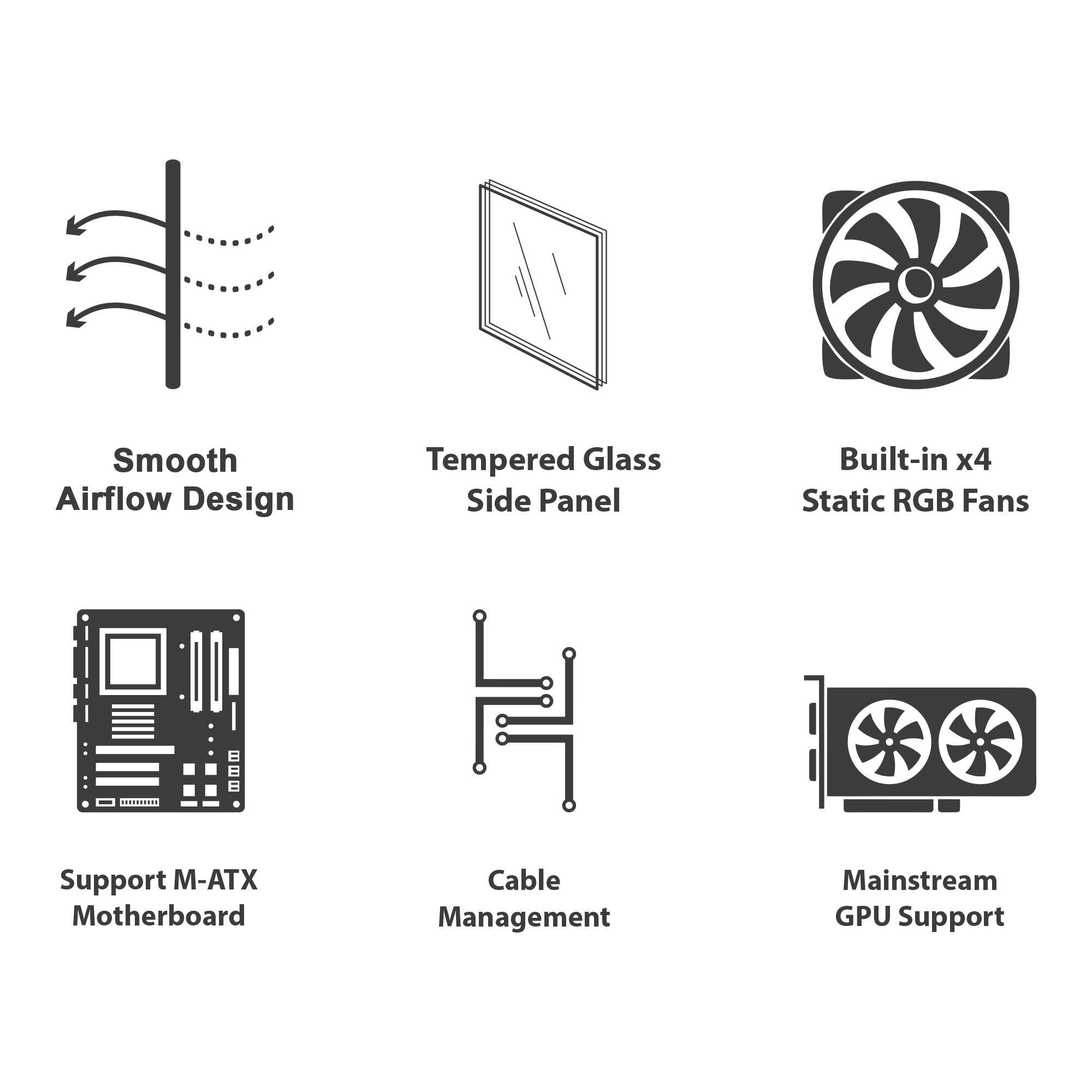 High-Airflow Compact Micro-ATX Case with full mesh front panel for excellent cooling.