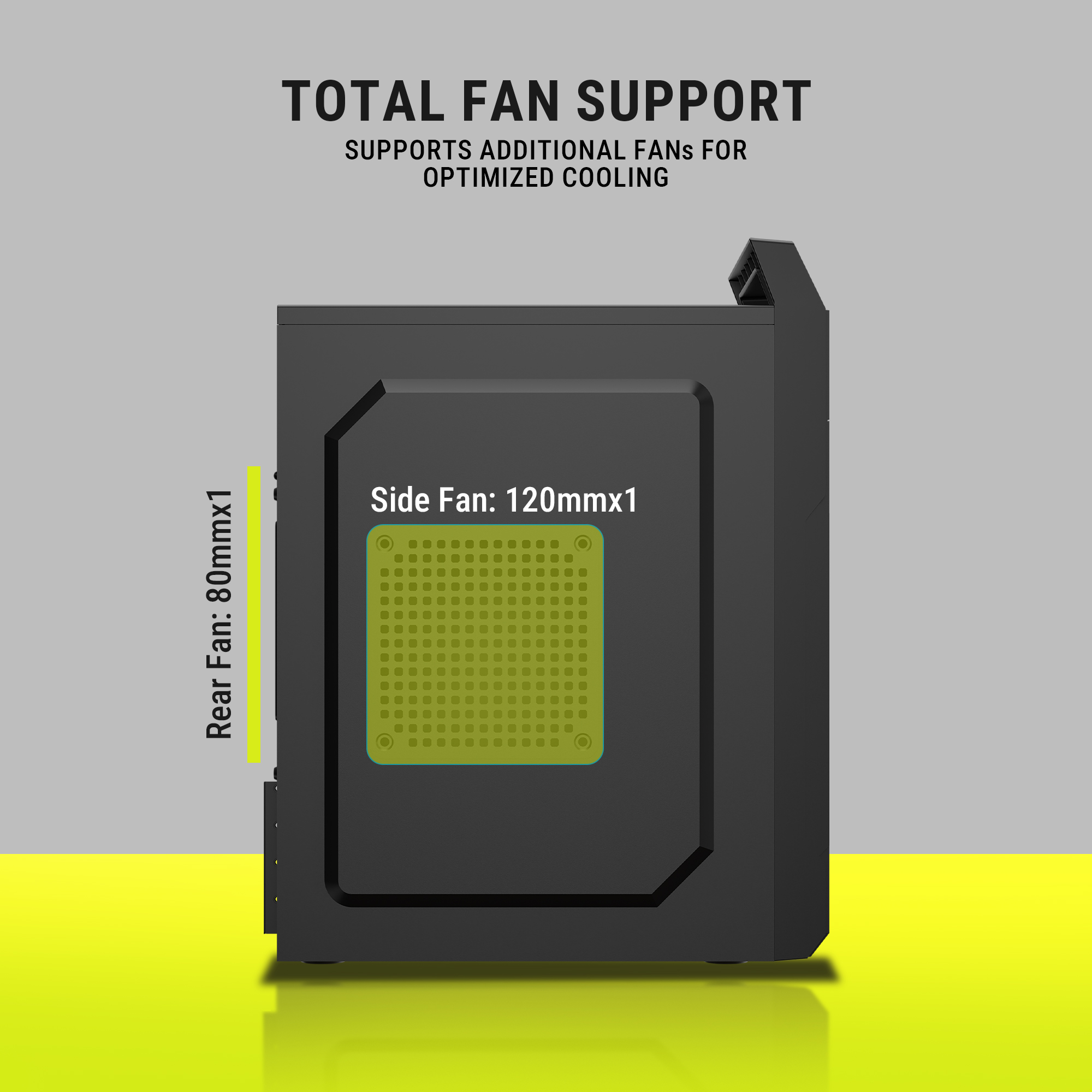 Pre-installed 2 top fans + 1 rear fan for efficient cooling