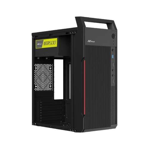 The ANT VALUE VM5P is a compact Micro-ATX computer cabinet designed to deliver performance, efficiency, and modern aesthetics in a space-saving form factor. Featuring a vertical airflow design and a minimalist industrial look, it blends seamlessly into both professional and home environments.