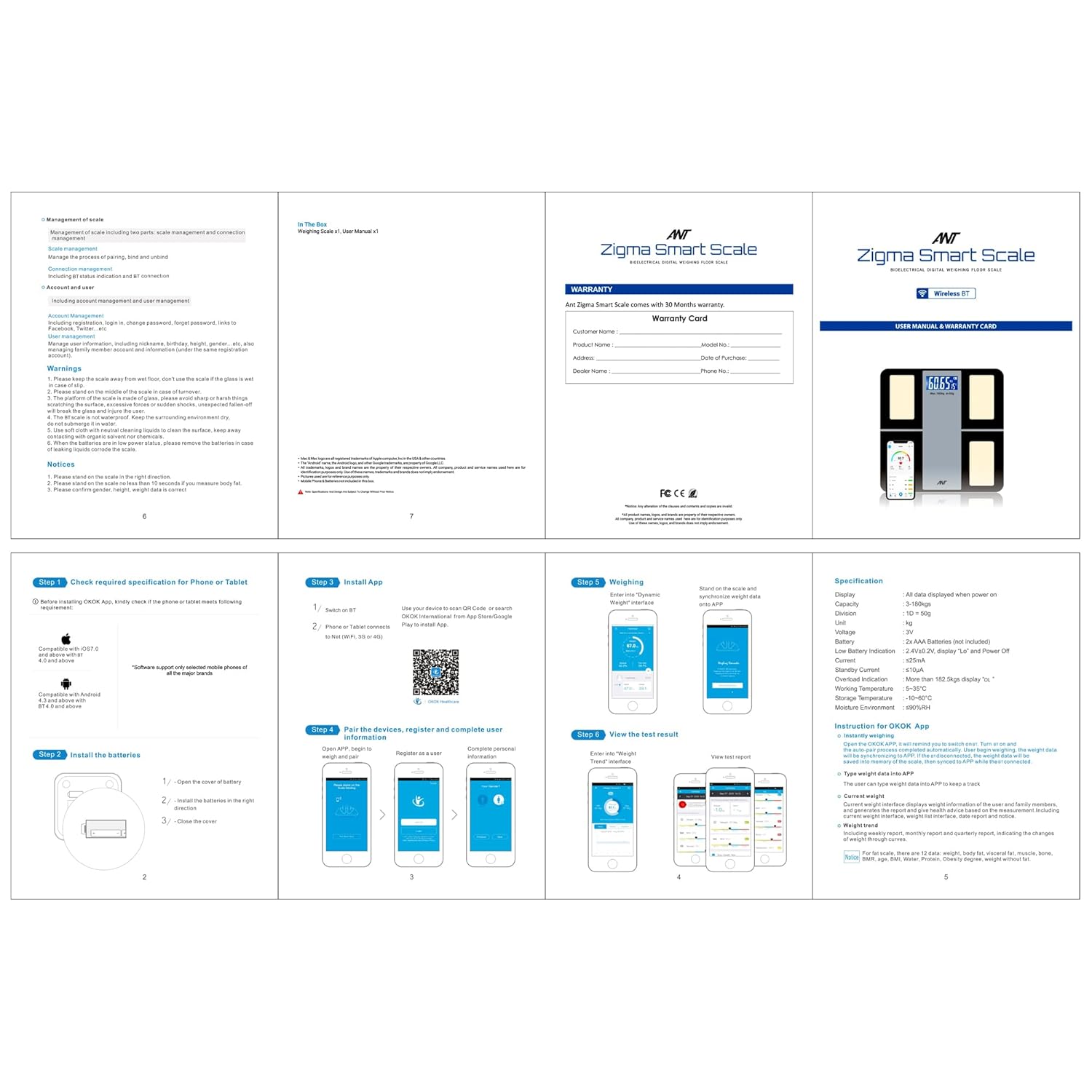 ANT Zigma Smart Digital Weighing Machine with App, Bluetooth BMI Monitor, Tracks 12 Body Metrics, Large Display, 30M Warranty – Black