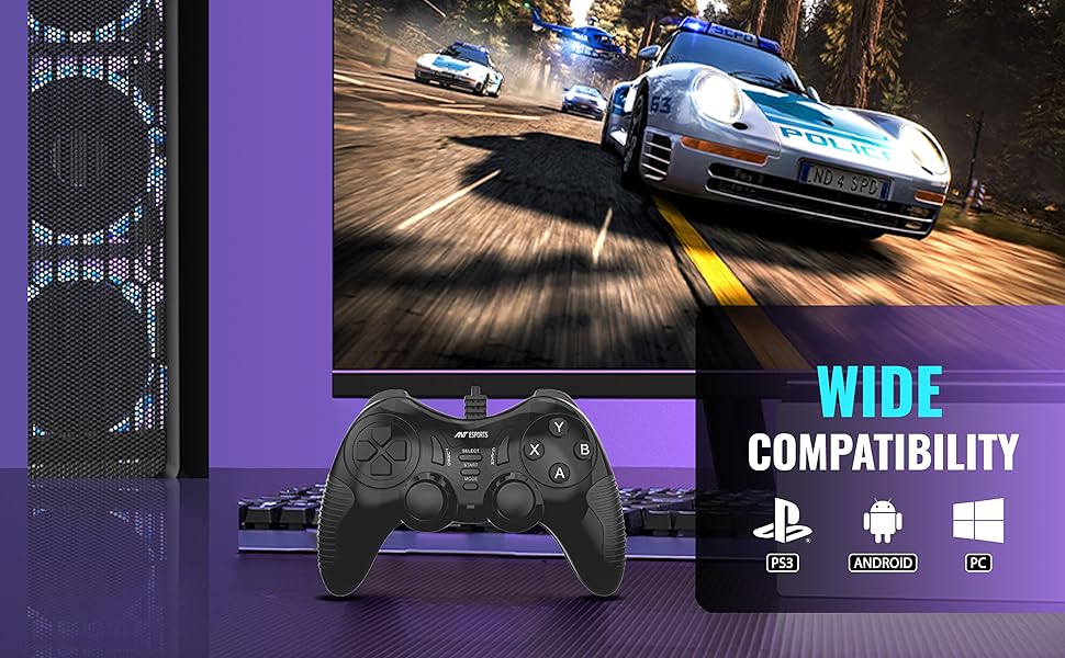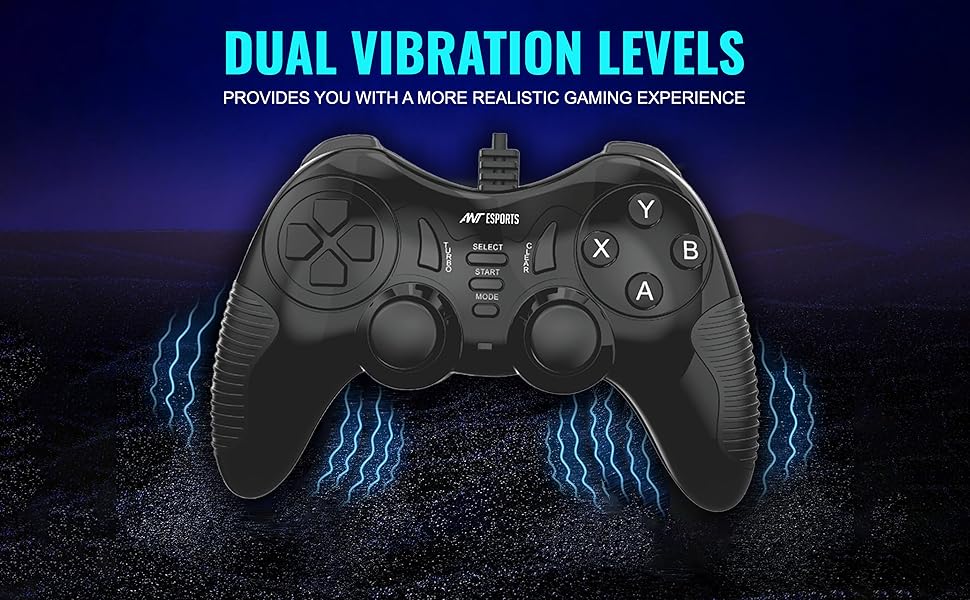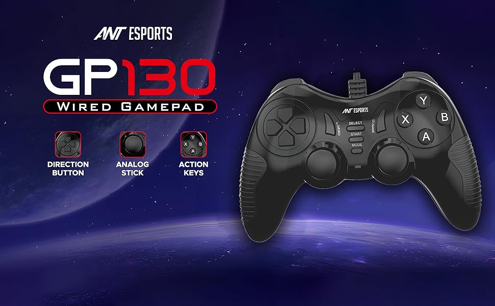 Ant Esports GP130 Wired Gamepad for PC, PS3, Android TV, Laptop – Dual Vibration USB Controller with Turbo Mode, 14 Buttons, Plug & Play, Ergonomic Design, Compatible with Windows & Steam_ Black